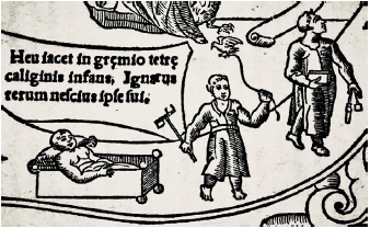 Varias son las fuentes iconográficas que ilustran los sayitos infantiles, ofreciéndonos un punto seguro de referencia para concretar el atuendo que vistió el príncipe Felipe en su juramento. Así, podemos observar esta prenda en el retrato familiar de Maximiliano II conservado en Viena (fig. 2), y también al propio don Felipe en la estampa en ípsilon pitagórica que Antonio de Honcala le dedicó en 1546, donde aparece representado en tres momentos de su infancia: recién nacido en la cuna, jugando con una matraca mientras hace volar un pajarillo, e instruyéndose en letras20 (fig. 3).