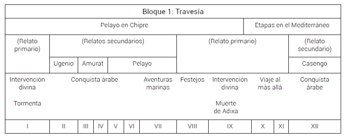 La configuración clásica de esta primera parte se percibe en el uso de la mímesis y la diégesis, concretamente en la integración de extensos relatos secundarios. A partir de la disposición de la Odisea y la Eneida, quedó asentada como virtud de la narración la inclusión de esta clase de apólogos: se debe dar voz a los personajes para que ellos comuniquen los sucesos anteriores. El propio Pinciano establece en su tratado que «el poeta debe hablar lo menos que él pueda» (XI, p. 208), lo que constituye una sólida defensa de la mímesis autónoma. Esta característica se verifica en otras epopeyas de la época: en Os Lusíadas Vasco de Gama expone la historia de Portugal y los acontecimientos anteriores de la expedición por petición del rey de Melinde; en Carlos Famoso el emperador relata ante la corte inglesa su vida desde 1516 hasta entonces. En el Pelayo, a fin de presentar pormenorizadamente los antecedentes históricos que envuelven la vida del héroe, se dedica la mayor parte de estos relatos secundarios a referir la fulminante conquista árabe de la península ibérica. Para ello se multiplican los narradores internos, al sumar junto al protagonista a otros tres interlocutores. Por el contrario, y en contraste con la Odisea y la Eneida, las aventuras por mar del relato secundario quedan reducidas, quizá para evitar que la aparición de un elevado número de lances, si no fantasiosos, al menos extraordinarios, mermara la verosimilitud histórica de la obra. La ampliación de la acción bélica ofrece al lector un amplio panorama de la potencia militar y la perfidia que, según López Pinciano, caracterizaban al enemigo, y permite valorar el imponente reto al que Pelayo se enfrentaba con su regreso. En contrapartida, se rompe la relativa armonía que se daba en la Eneida entre las aventuras y las batallas. Por otro lado, estos extensos relatos secundarios quiebran el orden natural de la narración. Debido a la adopción de este procedimiento por las grandes epopeyas clásicas, el comienzo in medias res quedó establecido en la teoría literaria como el modelo estructural ideal de la epopeya. No es por ello de extrañar que otras muchas obras de la época, como las citadas Os Lusíadas o Carlos Famoso, a las que se podría añadir la Gerusalemme liberata, recurran al mismo procedimiento44. También en el Pelayo la acción comienza en un punto intermedio, entre dos contiendas bélicas y sendas travesías marinas. Al principio de la obra Pelayo se encuentra en Tierra Santa, tras la conquista árabe de la Península y su viaje a Jerusalén. Pero se retarda el relato de estos sucesos hasta que el propio protagonista los cuenta ante el rey Ayato en una de las etapas de la navegación de regreso a la patria. A continuación, se desarrolla el resto de las etapas del viaje de vuelta y las acciones guerreras de la reconquista45.