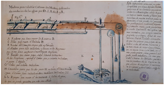 Pero es en un tercer volumen facticio, titulado Papeles relativos al gobierno político, económico y civil de Indias donde se reúnen la mayoría de manuscritos con temas vinculados de algún u otro modo con la sanidad y la salud de los ciudadanos novohispanos. En él se conserva un Método fácil para mejorar las cañerías que sirven para la distribución de las aguas de que se abastece el público en esta capital de México, ilustrado con dos láminas con dibujos de artilugios para taladrar las cañerías de madera proyectadas,