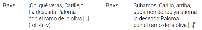 También puede suceder que los villancicos del pliego omitan algunos versos y cambien la asignación de los parlamentos, por usar el término teatral. Veamos, lado a lado, qué dice el segundo villancico y qué era lo que había dicho Góngora:
