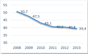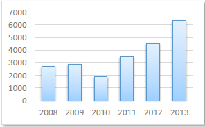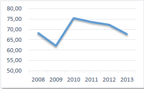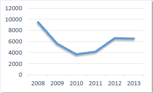 Norte de Santander ha sido un departamento fuertemente afectado por el conflicto interno, lo cual se evidencia en la magnitud del desplazamiento forzoso: entre el año 2008 y el 2013 se presentó un acumulado de 36.152 desplazados. En la gráfica 1 se evidencia, una disminución significativa entre los años 2008 y 2010; sin embargo, a partir del año 2010 se observa una tendencia creciente, según el informe presentado por la Fundación Ideas para la Paz (Prieto, C; Rocha; C, Marín 2014), el incremento de acciones guerrilleras (entre emboscadas, hostigamientos a la fuerza pública y otros eventos con explosivos) motivó el desplazamiento masivo.
