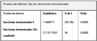 Teniendo en cuenta las variables mencionadas anteriormente, se plantea un modelo de regresión de datos panel de efectos fijos especificado de la siguiente forma: