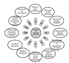 En los estudiantes fueron relevantes para el modelo institucional: actitud comportamental (13,9%), comprensión (13,9%), conocimiento disciplinar (11,5%), evaluación (10,3%), conocimientos prácticos (10%), explicación (9,4%), desarrollo de actividades en clase (9,1%), participación (7,7%), desarrollo intelectual (5,4%) y exposiciones del estudiante (4,1%). Durante la explicación, el 53,8% de los profesores explicó detalladamente el tema planeado a través de conceptos y ejemplos, un 5,8% de los profesores fue percibido como docentes que no planean la temática; el 29,8% acordó con los estudiantes cómo les gustaría abordar los temas.
