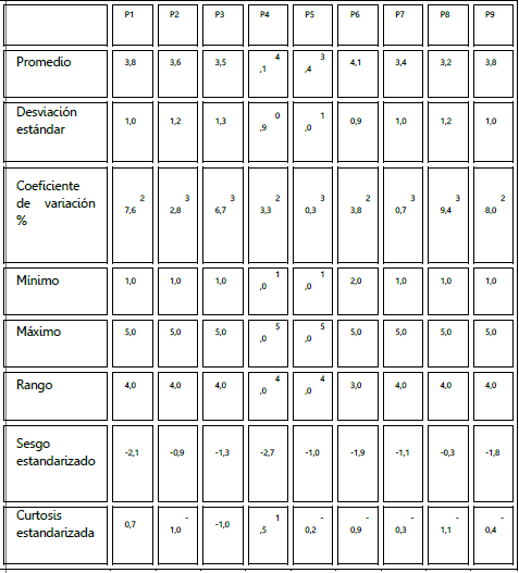 Para resolver el problema propuesto y alcanzar los objetivos, se diseñó un cuestionario de tipo estructurado a partir de preguntas cerradas, para ser diligenciado por los docentes. El criterio principal en la conformación de las preguntas, fue minimizar los errores que no provienen del muestreo; por lo tanto, se tuvo en cuenta el orden de presentación de las preguntas, y los docentes debían asignar una valoración entre uno (1) y cinco (5), donde uno (1) era la menor valoración (Huertas, Esmeral, Sanchez, 2014). Esta escala fue escogida por su cercanía con lo que ellos realizan cuando entregan valoraciones a sus estudiantes. Para eliminar los sesgos debido a la redacción de las preguntas, estas se presentaron de tal forma que fueran lo suficientemente claras, sin importar que los profesores que las contestaron tuvieran un alto nivel cultural.