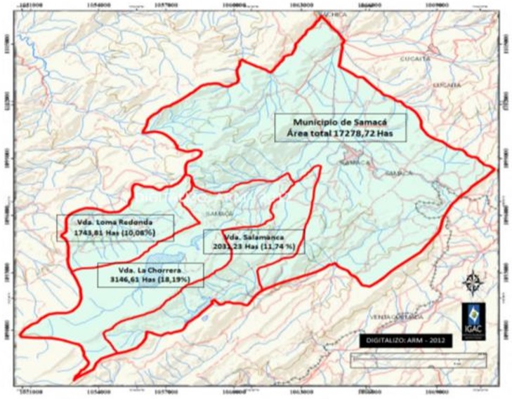 municipio de Samacá compuesta por las veredas Loma Redonda, La Chorrera y