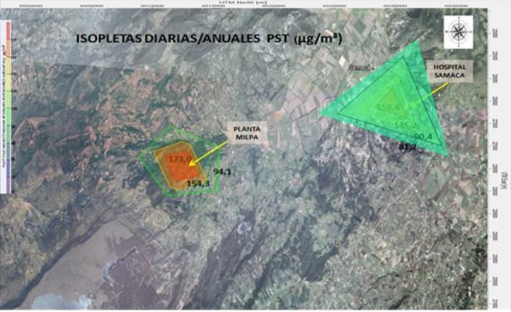 Por otra parte, se presentan concentraciones que exceden la norma de calidad del aire diaria y anual, lo cual implica a que si llega a presentarse eventos de contaminación permanente, sumado a condiciones meteorológicas desfavorables, existe riesgo de afectación a la salud pública.
