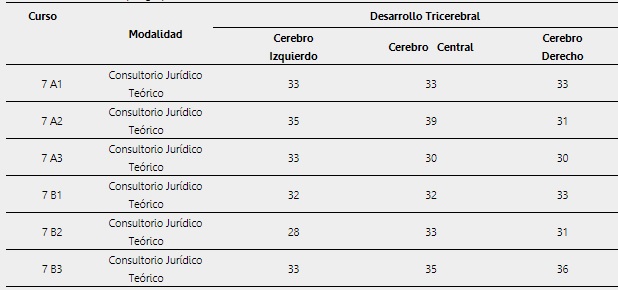 Las metodologías utilizadas en el desarrollo de las funciones cerebrales de los estudiantes, no van en concordancia, lo que impide generar en el estudiante, el desarrollo de las funciones lógicas y por ende el desarrollo de la proporcionalidad triádica. La falta de conocimiento del docente frente al funcionamiento tricerebral de sus estudiantes, impide que se exploren los caminos para el desarrollo de competencias mínimas necesarias para la práctica jurídica cognitiva, interpretativa, argumentativa y propositiva (Vergel, et.al, 2016, Barberis, 2016; Clérigo y Ronconi, 2012).