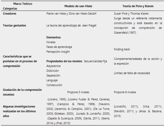 Estudio comparativo entre el modelo de van-Hiele y la teoría de Pirie y Kieren. Dos alternativas para la comprensión de conceptos matemáticos