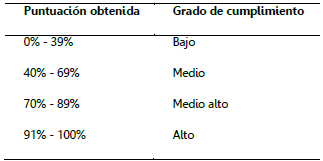 Para interpretar las puntuaciones obtenidas en cada uno de los aspectos y en la puntuación general del ranking se formula la siguiente escala progresiva: