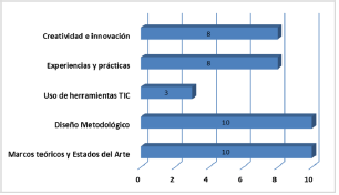 Como resultado de la aplicación del instrumento, los docentes también solicitan asesoría en cuanto a la selección del proyecto y el diseño metodológico, sugieren mejorar los trámites para hacer movilidades, salidas de campo y redes académicas, existen indicadores no cumplidos, de acuerdo a información registrada en el 70% de los CvLAC, lo cual implica, como lo menciona Salinas (2012), el fortalecimiento de las competencias docentes para los nuevos contextos caracterizados por la conectividad, con un nuevo manejo del conocimiento y la construcción de redes personales de aprendizaje, acorde a Valencia y Trejos (2013).