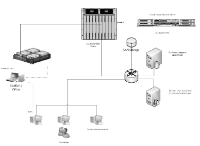 Con respecto del esquema con Oracle Virtual Machine, aunque no es una solución totalmente descartable, las características para la entrega de escritorios como servicio no presentan un desempeño óptimo para la utilización generalizada de escritorios a través de la red, esquema que generaría altas cuotas de tráfico y posibles caídas constantes de los nodos de red.