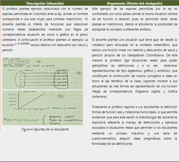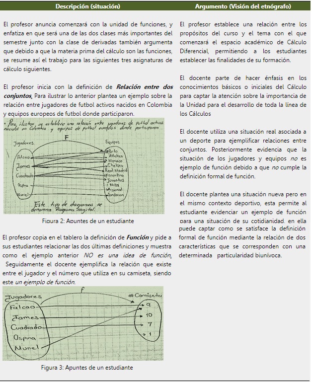 En este apartado los resultados y la discusión se presentan en función de los episodios de dos profesores en una clase de cálculo diferencial e integral respectivamente durante dos horas de clase en el primer semestre de 2017. La información obtenida y el registro de estos episodios se obtuvieron a partir de un registro en un diario de campo configurado por las notas de clase de los profesores, los apuntes de los estudiantes y una entrevista semiestructurada a los profesores. En este sentido, los dos episodios son presentados y discutidos mediante la triangulación de la información obtenida de estos instrumentos mencionados como se presenta en la siguiente tabla
