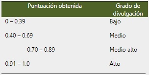 Con la puntuación obtenida en el ITG se obtiene el grado de divulgación de la información exigida por la Ley, de tal manera, que se entiende que H1 se rechaza en el caso que todas las entidades logren una puntuación en el rango de 0.91 – 1.0, es decir, que logran un alto nivel de divulgación.
