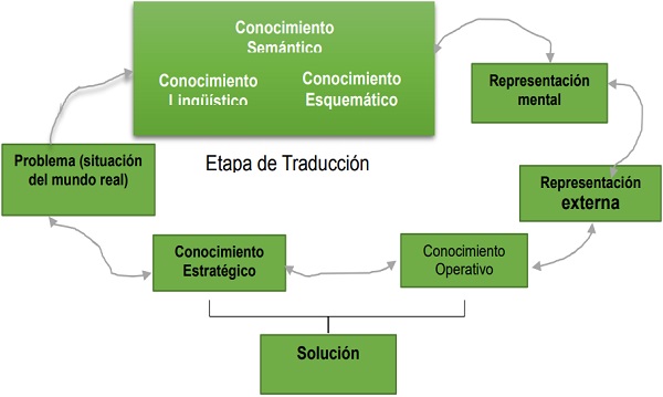 Lo anterior pone de manifiesto la importancia que tiene el conocimiento semántico en la etapa de traducción cuando se intentan resolver problemas como situaciones reales a modelar. Concretamente en el tránsito que tiene que hacer el resolutor del lenguaje natural al lenguaje matemático, construyendo un modelo mental de la situación (Zafra Tristanch, Vergel Ortega, & Martinez Lozano, 2014) y plasmarlo mediante una representación externa que puede ser una relación, función, gráfico o una ecuación conocido como modelo matemático.
