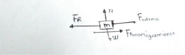 -Considere un resorte de longitud l sujetado con firmeza a un punto fijo (como el techo). Una masa que pesa 16 libras se fija en el extremo inferior del resorte y lo alarga 8⁄3 pie. La masa se libera inicialmente desde un punto 2 pies debajo de la posición de equilibrio y el movimiento posterior ocurre en un medio que ofrece una fuerza de amortiguamiento igual a 1⁄2 de la velocidad instantánea. Formule la ecuación diferencial que rige el movimiento del sistema masa-resorte si se aplica una fuerza externa igual a f(t)=10 cos3t.
