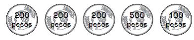 10. María va a comprar una leche que cuesta $600 y tiene las siguientes monedas para pagarla.