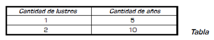 13. Un lustro es una medida de tiempo. La tabla muestra la cantidad de años equivalente a 1 y 2 lustros.