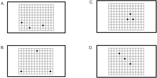 7. Si unen tres puntos con líneas rectas puedes armar un triángulo. ¿Con cuál conjunto de puntos NO puedes hacerlo?