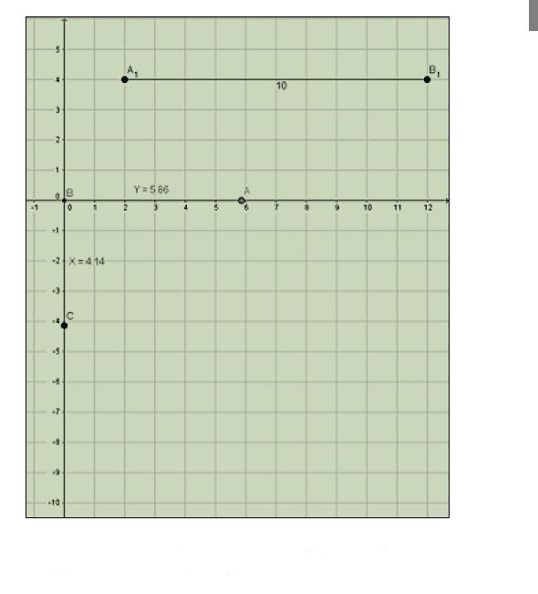 Para ello, se le propone elija una longitud de 10, o menor para que sea visible en el plano. Posteriormente el estudiante puede mover el punto A de nuevo y observar los cambios de longitud de los segmentos de cuerda. En los cuestionarios respectivos tiene que llenar tablas para x e y, para diversos valores de la longitud total.