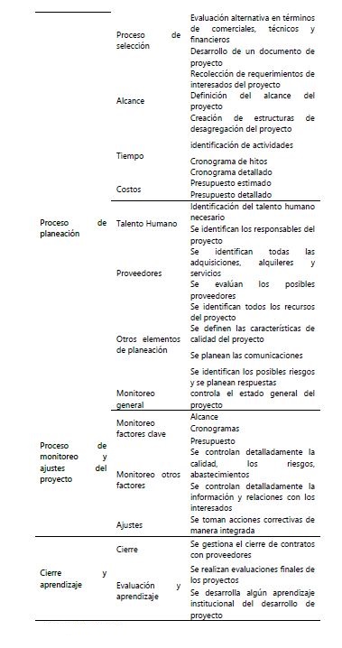 4. Proceso de monitoreo y ajustes del proyecto: Las organizaciones deben contar con procesos relacionados con el seguimiento, toma de decisiones y correctivos de acuerdo a la valoración de los diferentes elementos definidos en la planeación de los proyectos.