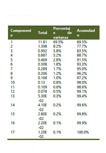 Para el proyecto se propuso el análisis de componentes principales (ACP) como una técnica multivariante que permite definir la estructura interna de un conjunto de datos mediante la definición de una serie de dimensiones subyacentes comunes, conocidas como factores o calificaciones de los componentes principales (Hair, Anderson, Tatham, & Black, 2000), (Johnson, 2000).