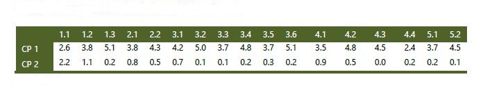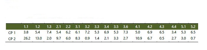 La matriz base, en la cual se encuentran los datos que permiten el cálculo de la matriz de correlaciones, es una matriz en la que se cruza la información de las empresas contra los factores definidos en el marco jerárquico. En este caso, el valor de cada factor inicial corresponde al promedio de la calificación obtenida dentro de los indicadores de madurez que se desagregan de dicho factor. De esta manera, y como los factores son construidos por diferente cantidad de indicadores, el peso de cada indicador de madurez frente a la calificación del factor está dado por: