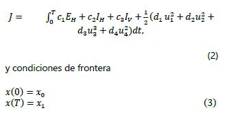 En el problema de control, se asume un tiempo inicial t=0, un tiempo final t=T fijo, el cual representa el tiempo de implementación de las estrategias de control y x1 será de 120 días (4 meses aproximadamente), y se asumen variables dinámicas libres en ese tiempo final, mientras que las coordenadas de la condición inicial x0 son las coordenadas de un equilibrio endémico para el sistema.
