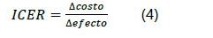 Los ICER dados en la Tabla 5, se calculan de la siguiente manera: