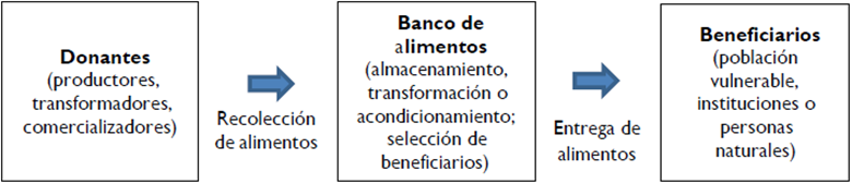 El problema actual del hambre en el mundo se da sobre todo por problemas de acceso a los alimentos (Friedrich, 2014). Han sido varias las iniciativas que intentan erradicar o, al menos, combatir el hambre y alcanzar la seguridad alimentaria (Basso, 2013) y, de manera general, disminuir el impacto de dicha problemática. Entre estas se encuentran los llamados bancos de alimentos, los cuales buscan fortalecer la seguridad alimentaria y nutricional de poblaciones vulnerables mediante la disminución del desperdicio de alimentos y otros productos de consumo. Su principal actividad consiste en recolectar alimentos de donantes, que pueden ser productores, transformadores o comercializadores, para asignarlos y distribuirlos entre poblaciones vulnerables. Se enfoca así en disminuir las necesidades básicas alimentarias sociales y atender la desnutrición, especialmente la de los niños procurando donaciones de alimentos aptos para el consumo, aunque no sean comercializables (Maldonado & Moya, 2010).