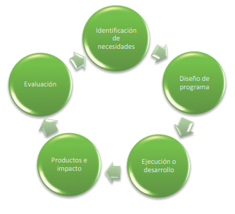 Es importante considerar en el programa de EEF la evaluación interna del proceso de formación en los docentes como parte de un conjunto de criterios de calidad orientados por principios de consistencia y credibilidad. Siendo la evaluación un ejercicio esencial para ayudar a perfeccionar los diferentes aspectos de la operación del programa en EEF para implementar un proceso de mejoramiento continuo, se toma del Programa Institucional de Formación Docente (Universidad de Colima, 2012) lo continuo, sistemático y multidimensional del proceso, del cual se recoge información relevante, válida y fiable para tomar decisiones sobre el valor de este. En la evaluación, se sigue el modelo propuesto por Stufflebeam y Shinkfield (1987), denominado CIPP (Context, input, Process, Product), cuyo propósito es recolectar información para tomar decisiones en el programa, en el cual se integran estas cuatro dimensiones, en cinco fases, como se muestra en la Figura 1.