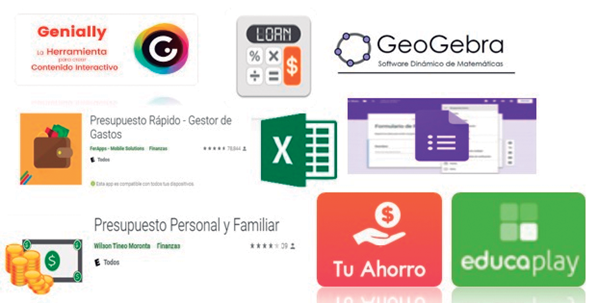 Las actividades de desarrollo fueron diseñadas con ayuda de herramientas tecnológicas que permitieron captar la atención de los docentes y estudiantes, y propiciar un ambiente de aprendizaje innovador, con uso de aplicaciones y plataformas gratuitas como Educaplay, Genially, GeoGebra, Excel y formularios de Google (Figura 7).