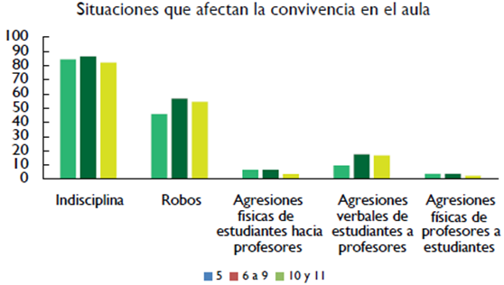 En el estudio "Clima, conflictos y violencia en la escuela" (D'Angelo & Fernández, 2011) se identifica que los agentes de la violencia son los alumnos y las víctimas los docentes, se describen acciones puntuales: