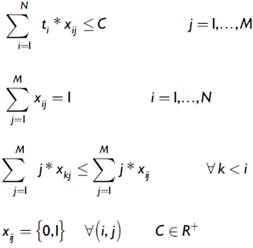 Con esta información se empieza asignando las tareas que no tengan precedencias, hasta que se cubra la disponibilidad de cada centro de trabajo teniendo en cuenta la restricción de tiempo. Se crea entonces una lista con las tareas no asignadas, luego se escogen las que no tengan precedencias asignando tantas tareas como sea posible teniendo en cuenta el orden en que deben realizarse.