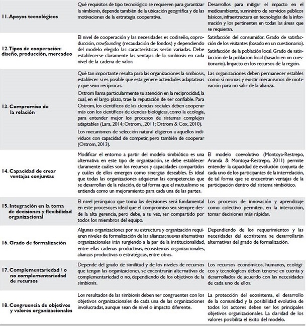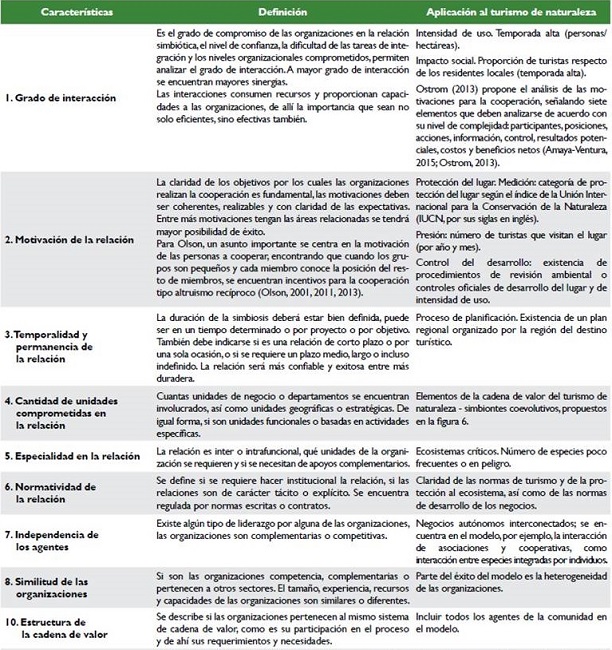 El modelo de cooperación simbiótico resulta particularmente importante, porque a medida que se desarrolla el turismo se requiere que los agentes que participan en esta cadena de valor se adapten evolucionando conjuntamente. Las reglas y normas tanto legales como propias del sistema favorecen la interacción y resulta interesante la transparencia de los procesos y la baja cantidad de dificultades en el modelo, en el cual, la comunidad tiene plena claridad de la necesidad del trabajo conjunto, de los procesos coevolutivos que surgen a partir de las nuevas necesidades y de las oportunidades de la interacción simbiótica entre las diferentes organizaciones.