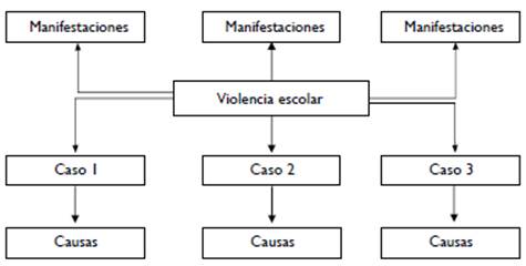 La segunda sesión tuvo el objetivo de brindar herramientas sobre cómo realizar un diagnóstico del conflicto escolar (e.g., ver figura 1). Para ello se realizó la metodología de "el árbol de problemas", en la que los estudiantes realizaron una identificación de casos repetitivos (ubicados debajo del problema central) de una raíz central que es la violencia escolar dentro de su institución educativa; después, buscaron las causas de los respectivos casos (ubicados debajo de los casos) y finalmente expresaron las manifestaciones (exteriorización del conflicto) más comunes de los problemas.