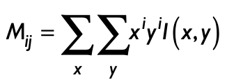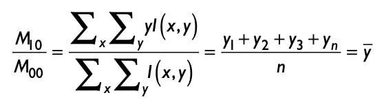 De igual forma, la componente en x se obtiene al dividir los momentos M0I y M00, de la siguiente forma (ver ecuación 11):
