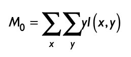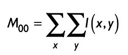 Los tres momentos son denominados M00, M01 y M10, y al hallar el momento M00, la ecuación queda reducida a la forma mostrada en la ecuación 7, obteniendo el área en pixeles de la región blanca.