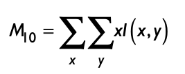 Los momentos M10 y M01 , se obtienen de la forma en que se presenta en las ecuaciones 8 y 9 respectivamente.