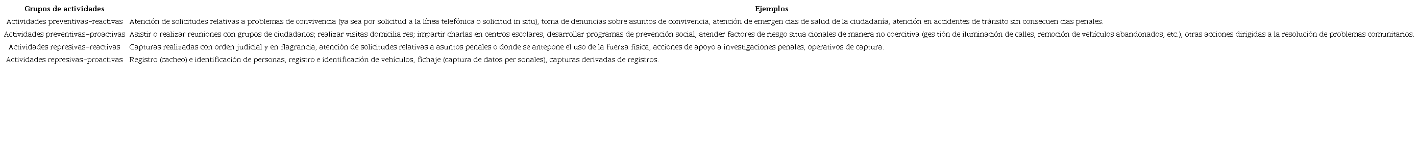 Se complementó la información cuantitativa de las actividades con otra de tipo cualitativa, considerando también las opiniones de la ciudadanía. Por ejemplo, las actividades represivas también es necesario contrastarlas con las percepciones de justicia procedimental de la población (Tyler, 2004).