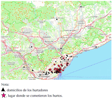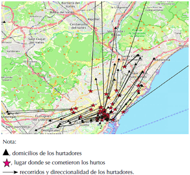 Según la teoría de Brantinghan & Brantingham (1981), los ladrones viven a una distancia próxima al lugar donde se comete el hurto y, en Barcelona, la mayoría de ellos recorren una distancia de hasta 5 km, según las investigaciones de Rhodes & Canly (1981), Rengert et al. (1999) y Sarangi & Youngs (2006).