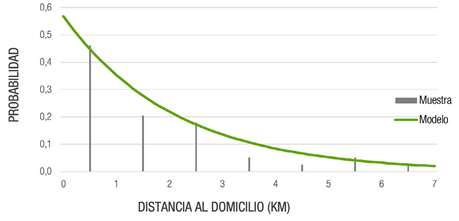 La mayoría de ladrones de Barcelona actúan cerca del domicilio; recorren una distancia entre 0 y 5 km y, a medida que se alejan, roban cada vez menos (figura 3).