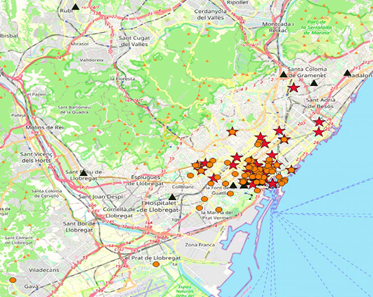 Establecer el perfil geoespacial de una muestra de hurtadores de Barcelona.