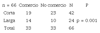 El análisis del lugar de los hurtos muestra que estos están equitativamente repartidos entre el comercio y los espa cios no comerciales, aunque se observa que para delinquir en los comercios los ladrones recorren distancias más largas. La diferencia es estadísticamente significativa (X2 (1) = 1 7.569; p = 0.001; V = 0.001) (tabla 3).