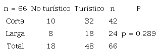 La mayoría de ladrones delinquen en una zona turística y muchos de ellos recorren una distancia corta, sin que exista una diferencia estadísticamente significativa (tabla 5).