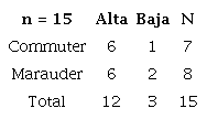 La gran mayoría de commuters recorren una distancia larga (por encima de los 8.62 km) y todos los marauders recorren distancias cortas, por debajo de los 8.62 km. En conclusión, 2/3 partes de los hurtadores recorren menos de 8.62 km (tabla 9).