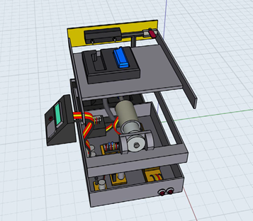 De acuerdo con lo expuesto por Apat (2017), en este paso el grupo planteó diferentes soluciones creativas, las cuales se plasmaron en un diseño en 3D del prototipo del dispositivo electrónico a escala, con el propósito de establecer las medidas exactas antes de llegar a su impresión en físico y verificar que la integración de sus componentes funcionará adecuadamente, como se puede observar en las figuras 2 a la 6.
