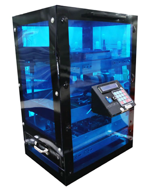 El circuito de control está constituido por el microcontrolador PIC18f4550, más una interfaz compuesta por un teclado matricial y una pantalla LCD 2*20, mientras que la parte de potencia se encuentra integrada por un par de relevos, los cuales se encargan de realizar la inversión de giro del motor, según sea el caso, con el fin de desplazar la bandeja de los proveedores para realizar la recarga de los mismos. El control de estos relevos se hace por medio de unos transistores MOSFET, los cuales soportan bastante flujo de corriente.