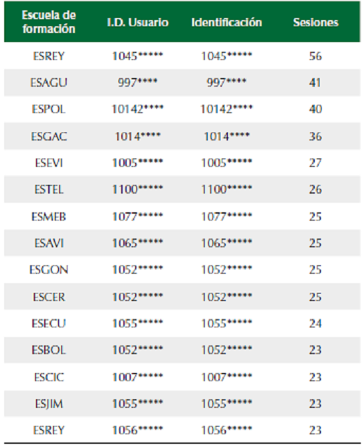 El diseño del ecosistema digital, en su componente de servicios académicos digitales, comprende las posibilidades y limitaciones de los recursos ofertados a docentes y estudiantes para representar, procesar, transmitir y compartir información. Este diseño resultó ser un espacio digital adecuado para 28 escuelas, dado el proceso de convergencia y usabilidad oportuna y efectiva que arrojaron los resultados de uso de la plataforma a favor de las labores realizadas en el sitio web de la institución de la Policía Nacional (figura 5).