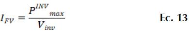 Para conocer la corriente de entrada del inversor se hace uso de la Ecuación 13.