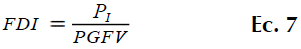 b. Dimensionamiento del inversor. Para el dimensionamiento del inversor se tuvo en cuenta el factor de dimensionamiento (FDI) que representa la relación que existe entre el generador fotovoltaico y el inversor. Para determinarlo se debe hacer uso de la ecuación 7.